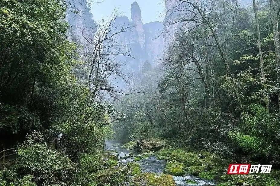 金鞭溪被誉为 “寰球上最瑰丽的峡谷”,全长 7.5 公里,穿行于张家界三千奇峰之间J9九游会体育,是寰球当然遗产武陵源的中枢生态廊说念。一场春雨事后,所有这个词峡谷被簇新的水汽包裹,空气里尽是草木与土壤的芬芳。溪水裹带着山间灵气,在青灰色卵石间奔涌流淌,叮咚水声与林间鸟鸣、微风穿林之声交汇,奏响一曲疗养的当然交响。两岸峰林经雨水洗涤,愈发葱翠欲滴,浅深不一的绿意铺满山谷,枝叶间挂着的彻亮雨珠,在天光下折射出温润光辉,为魁岸的峰林添了几分灵动。