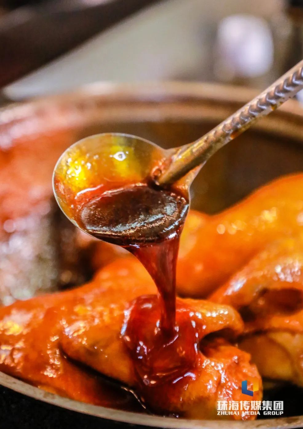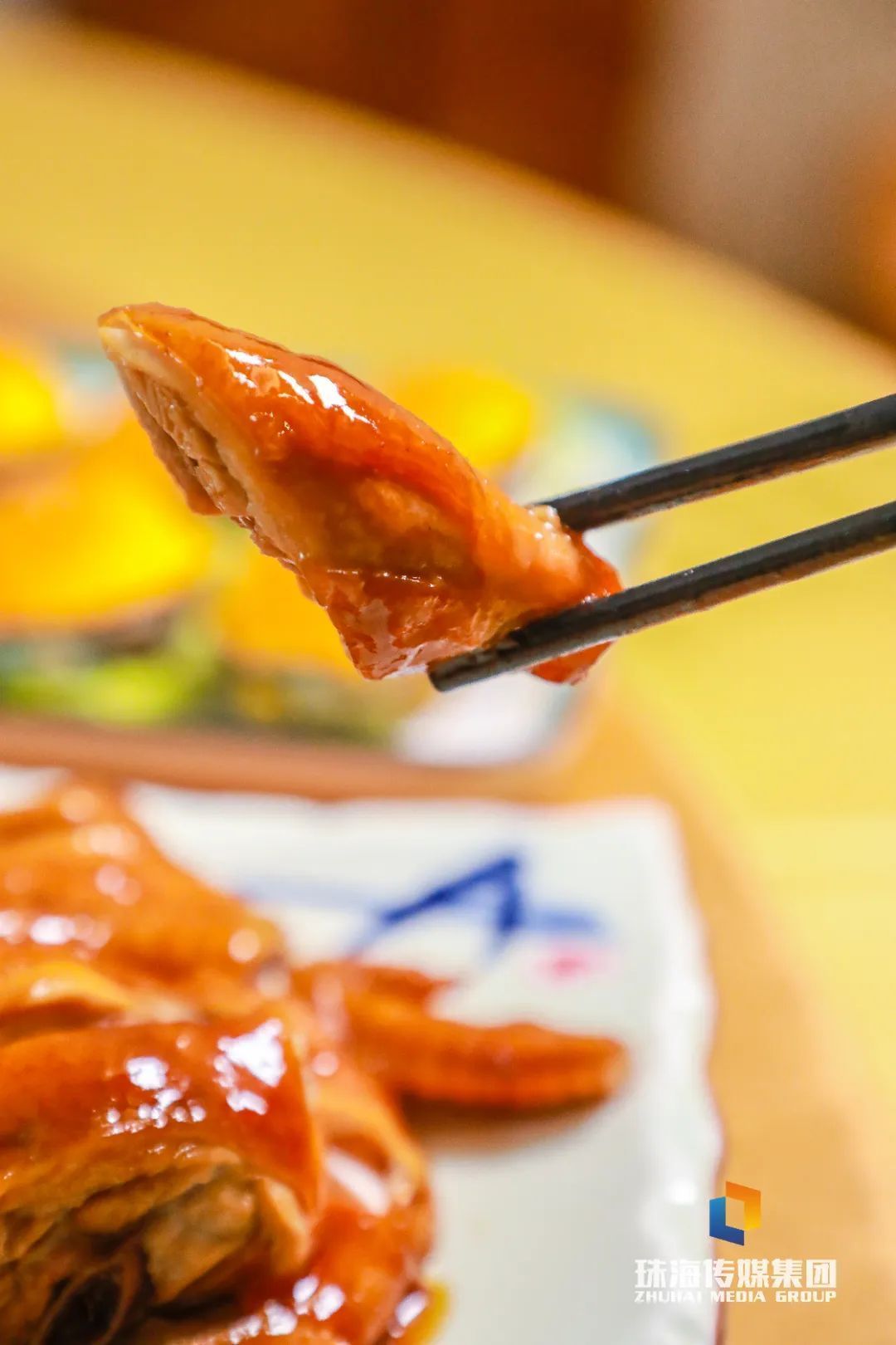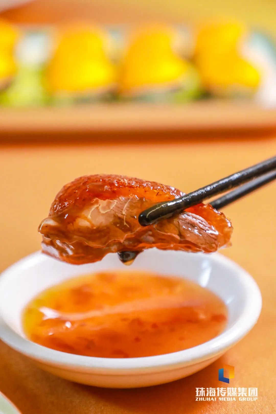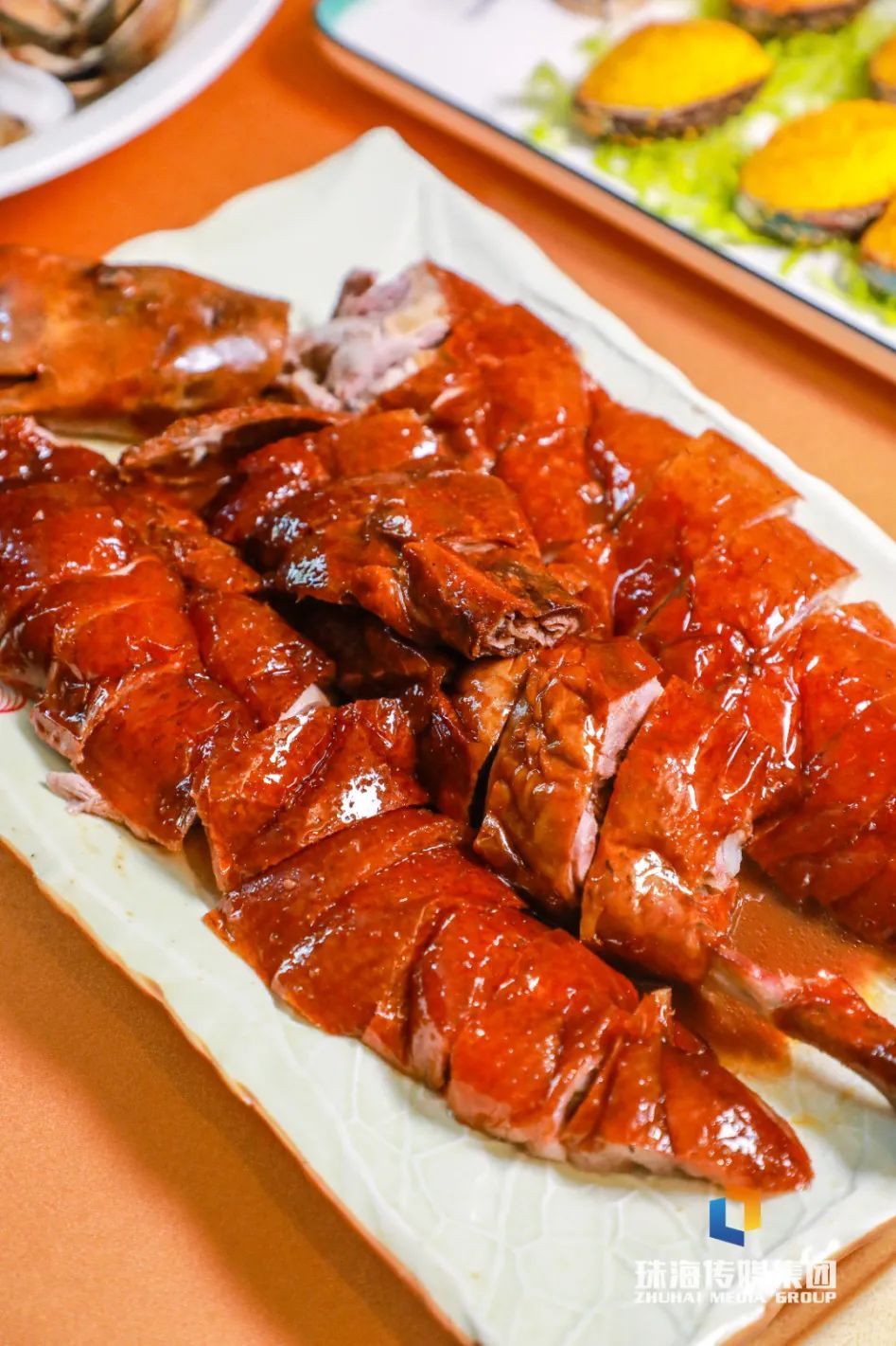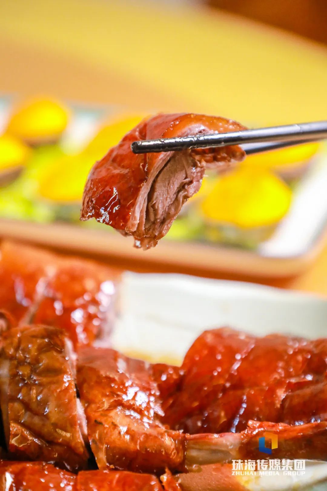 鹅皮酥脆如纸,泛着诱东谈主的琥珀明朗,