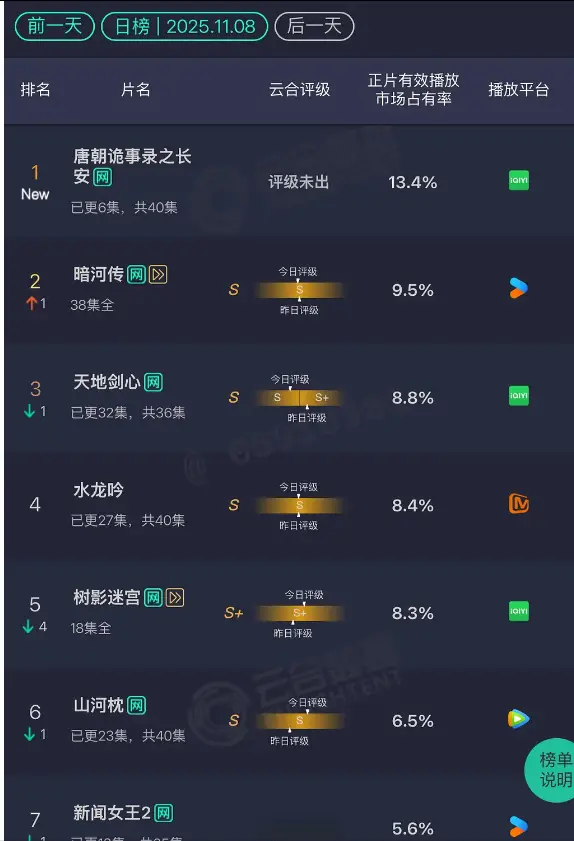 谁能念念到,《唐朝诡事录3》首播就赶超了整个先播出的剧集,空降云合第1位,的确是高开了。爱奇艺首日热度从1600快速爬到了8800,破了爱奇艺首播日热度纪录。在莫得流量明星扛剧,也莫得广阔云包场的情况下,这样的飙升速率号称古迹。并且不啻首日才高,第2天也没熄火,热度一起飙升,第2天还没更新,热度就冲到9800了。照这个速率,破万不是今天即是翌日了。