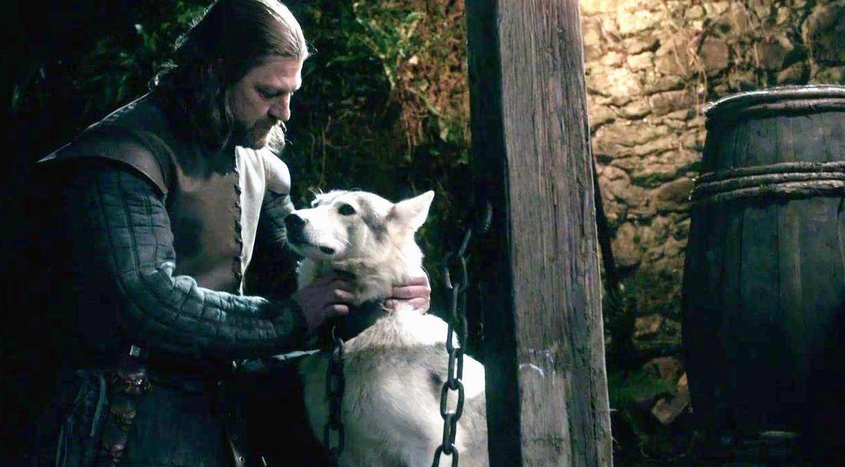 而冰原狼,是史塔克家眷不成分割的一部分。它们象征着北境过火文化,剧集也刻意强调了史塔克家每个孩子与我方冰原狼的羁绊。