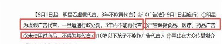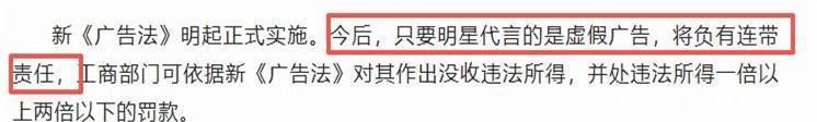 字据新立异的《告白法》,明星若代言子虚告白,将需承担连带背负。一朝受到行政处罚,三年内将无法担任代言。
