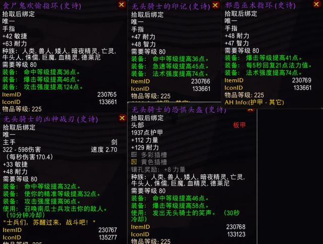 相较于可圈可点的好意思酒节225等第饰品,万圣节的这些225禁止、头盔和火器实用性就要差得多。禁止并不像饰品那样稀缺,225等第禁止只配给正派升小号过渡使用,无头骑士战刃掷中精确属性确乎可以,然而别忘了拍卖行内部还有大都226装绑好意思酒节羽觞,至于板甲头就更没用了,谁还没个战胜纹章换的T8头呢。就算是给小号当过渡装,万圣节BOSS装备亦然来源被淘汰替换掉的。