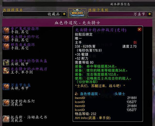 国服现时好意思酒节BOSS掉落的225等第装备的物品ID都是新的,ID号一直排到230763,于是聪惠的玩家追根究底在物品ID230765-230769发现了国服新增的万圣节BOSS装备。