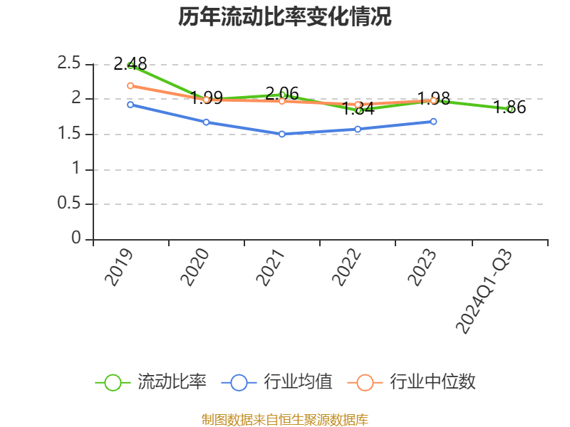 2024年前三季度,公司流动比率为1.86,速动比率为1.57。