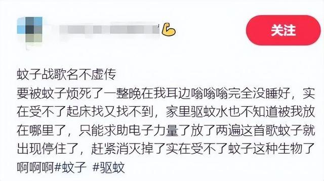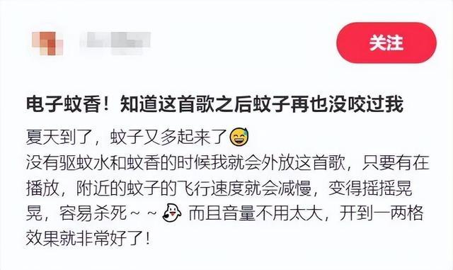 对此,广东省科学院动物商量所刘博士暗示,蚊子主淌若通过甚部的鞭毛来感知声息的滚动,雌蚊在交配的期间,亦然以滚动来(感知对方),音乐的频率可能刚好和蚊子的频率筹商,就会导致它报复的空想缩小。据先容,声息对蚊子的影反映该只停留在感官的层面,并非是某一歌曲有神奇功效,况且关于蚊子来说,听觉也并非是其感知外界的主要时刻。